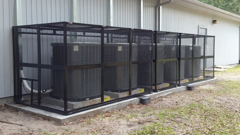 To protect your condensing unit, you will need to measure the width, height, and depth, next, measure the top and side and add 4 inches of clearance. Once you have these measurements, you will have an estimated size of the cage you will need to buy or have custom designed. It is essential that you have enough clearance to the measurement so that you can clean the unit without struggling.