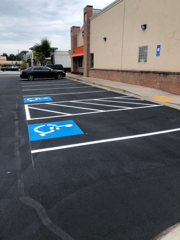 Asphalt Sealcoating Atlanta • Professional Parking Lot Sealing • Black Sealer + Bright Striping